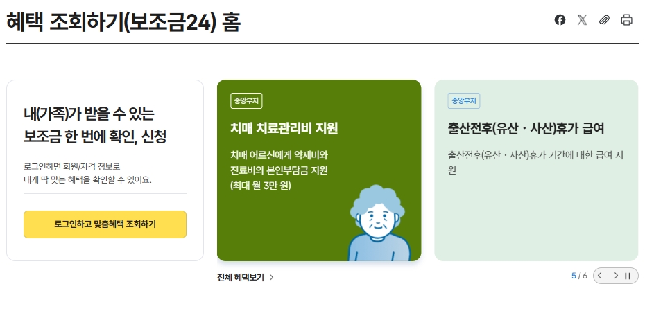 정부24 홈페이지나 앱에 접속하여 로그인을 하면, 나의 나이, 소득, 거주지 정보를 바탕으로 내가 받을 수 있는 모든 지원금을 한눈에 요약해 보여줍니다.